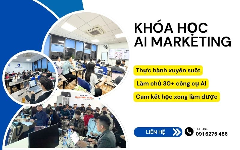 Khóa học AI Marketing thực chiến từ cơ bản đến nâng cao 11:02 sáng 20/06/2024 3724 lượt xem Trong thời đại ỨNG DỤNG AI lên ngôi, ai ứng dụng trước, người đó chiếm ưu thế! Đừng bỏ lỡ khóa học AI Marketing của Minh Dương Media! Ngay cả khi bạn là người mới bắt đầu, chưa có nền tảng về công nghệ, dù ở độ tuổi nào cũng đều học được. Mục lục bài viết 5 lý do bạn nên học AI Marketing NGAY BÂY GIỜ nếu không muốn bị tụt lại:Khóa học AI của Minh Dương Media phù hợp cho những ai?Tại sao nên tham gia khóa học AI tại Minh Dương Media?Nội dung khóa học AI toàn diện từ cơ bản đến chuyên sâuBUỔI 1: CHIẾN LƯỢC X5, X10 KẾT QUẢ BÁN HÀNGBUỔI 2: VẬN HÀNH KÊNH TIKTOK TRÊN CHẾ ĐỘ TỰ ĐỘNG VỚI AIBUỔI 3: SẢN XUẤT ẢNH, VIDEO BẰNG AI – TỰ ĐỘNG HÓA, CHUẨN THƯƠNG HIỆUBUỔI 4: BỘ CÔNG CỤ AI TỐI ƯU CÔNG VIỆC, LÀM ÍT HIỆU QUẢ NHIỀUBUỔI 5: EDIT VIDEO VỚI CAPCUT + CANVA + AI HỖ TRỢBUỔI 6: THỰC HÀNH EDIT VIDEO CAPCUTBUỔI 7: LÀM WEBSITE, TẠO LINK BIO – TỔNG KẾT HÀNH TRÌNH TĂNG TỐC CÙNG AIHình thức học tập linh hoạt, phù hợp cho mọi đối tượngCam kết sau khi hoàn thành khóa học AI MarketingBảng giá khóa đào tạo AI Marketing mới nhất 5 lý do bạn nên học AI Marketing NGAY BÂY GIỜ nếu không muốn bị tụt lại: – Bán hàng online dễ hơn nhiều – Tiết kiệm chi phí thuê người, tự làm vẫn chuyên nghiệp – Học xong ứng dụng được ngay cho công việc hiện tại – Đang là xu hướng tuyển dụng và phát triển kỹ năng bắt buộc – Không chỉ biết ChatGPT, được hướng dẫn 30+ công cụ AI thực chiến Đầu tư vào việc học AI ngay hôm nay không chỉ phục vụ giải trí mà còn để xây dựng thương hiệu cá nhân, công việc, bán hàng lâu dài! Khóa học AI của Minh Dương Media phù hợp cho những ai? Minh Dương là đơn vị vừa cung cấp dịch vụ marketing vừa đào tạo các khóa học marketing Chủ shop online, kinh doanh cá nhân→ Tự viết content, làm video, tạo hình ảnh nhanh chóng, không cần thuê ngoài, tiết kiệm chi phí. Nhân viên marketing, content, design→ Nâng cấp kỹ năng, tăng hiệu suất làm việc, cơ hội tăng thu nhập, thăng tiến. Chủ doanh nghiệp nhỏ & vừa (SMEs)→ Hiểu và ứng dụng AI để tối ưu vận hành marketing, không bị phụ thuộc vào nhân sự bên ngoài. Freelancer làm trong lĩnh vực sáng tạo→ Biết AI giúp làm nhanh, làm nhiều, mở rộng dịch vụ, tăng thu nhập. Người mới bắt đầu học marketing→ Đi tắt đón đầu, không cần nền tảng vẫn ứng dụng được AI vào công việc thực tế. Người làm nội dung trên mạng xã hội (TikTok, Facebook, YouTube…)→ AI giúp sáng tạo nội dung đều đặn, đúng trend, dễ viral hơn. Học sinh, sinh viên ngành truyền thông, marketing→ Học sớm để bắt kịp yêu cầu công việc hiện đại và thực chiến. => Điểm đặc biệt của khóa học AI tại Minh Dương là lộ trình được thiết kế từ cơ bản đến nâng cao, không yêu cầu học viên phải có kiến thức nền tảng về lập trình hay công nghệ phức tạp. Phù hợp với mọi độ tuổi, mọi đối tượng! Tại sao nên tham gia khóa học AI tại Minh Dương Media? Một số đơn vị hiện nay chỉ tập trung dạy cơ bản như: – Tập trung vào ChatGPT cơ bản: Chủ yếu hướng dẫn cách đặt câu hỏi, trả lời, ứng dụng thông thường (hầu như mọi người đã biết). – Các khóa học online đại trà: Nội dung rập khuôn, thiếu thực hành, không đi sâu vào tư duy ứng dụng hay tích hợp công cụ. – Các lớp chia sẻ miễn phí: Thường chỉ mang tính giới thiệu, không đủ kiến thức để triển khai thực tế. 👉 Còn tại Minh Dương: – 2 in 1: Vừa biết bán hàng và cách xây dựng thương hiệu cá nhân bằng AI. – Tích hợp sử dụng các công cụ AI để ra được video hoàn hảo mà không lo bị rối. – Tích hợp hơn 30+ công cụ AI: ChatGPT, AI viết content, tạo hình ảnh, AI video, voice, design… – Được học tư duy hệ thống, ứng dụng AI theo từng mục tiêu cụ thể (bán hàng, xây thương hiệu, làm content…). – Học xong có thể tự tay làm video ngắn hoàn chỉnh bằng AI, Capcut, hình ảnh, voice thuyết minh bằng AI, sáng tác nhạc… – Không đơn giản là để giải trí, khóa học còn giúp tư duy ứng dụng vào công việc cho người bán hàng, chủ doanh nghiệp, người đi làm. Nội dung khóa học AI toàn diện từ cơ bản đến chuyên sâu BUỔI 1: CHIẾN LƯỢC X5, X10 KẾT QUẢ BÁN HÀNG Bứt Phá Doanh Số – Chiến Lược X5, X10 Kết Quả Bán Hàng Khám phá thế giới AI: Công nghệ đang thay đổi cuộc sống của bạn mỗi ngày Biết AI là có lợi thế: Tăng tốc học tập, làm việc thông minh và dẫn đầu xu hướng Bộ công cụ AI không thể thiếu: “Vũ khí bí mật” giúp bạn học nhanh, làm giỏi Lưu ý, hạn chế khi sử dụng AI Nguyên tắc vàng để Biến AI thành “cộng sự thông minh” đắc lực mỗi ngày BUỔI 2: VẬN HÀNH KÊNH TIKTOK TRÊN CHẾ ĐỘ TỰ ĐỘNG VỚI AI Vận Hành Kênh TikTok Trên “Chế Độ Tự Động” Với AI Biến ý tưởng thành video triệu view với AI Khám phá thế giới video AI – Định dạng nào đang làm mưa làm gió? Xây kênh YouTu